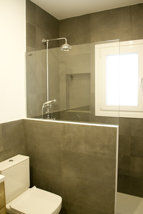 En muchos casos el espacio disponible es uno de los grandes problemas que nos encontramos, ya que tenemos que ajustarnos a superficies menor de 4.00 m2., con lo que habría que recurrir a sanitarios y mobiliarios suspendidos y puertas y mamparas de cristal.